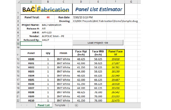 The Composite Panel Builder App sorts panels by release and material finish to effortlessly automate cut list, panel list and material take-offs. Field materials like filler strips, caulking, backer rod and channels are also tabulated. Click to view!